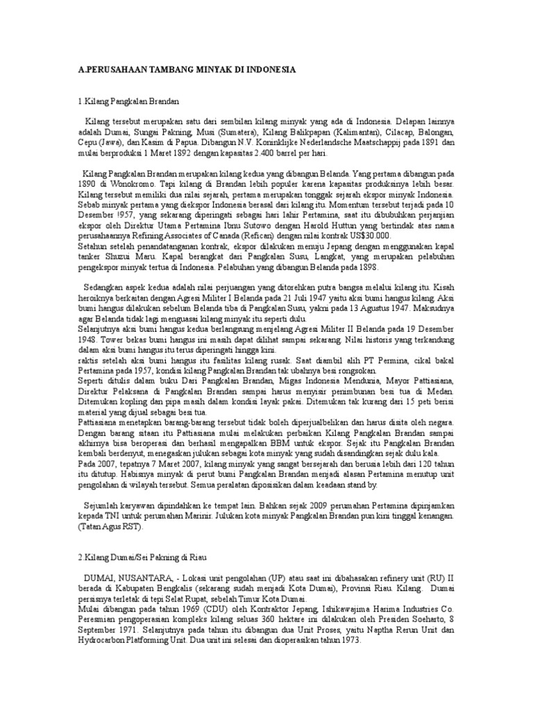 Perusahaan Tambang Minyak Negara (Ptmn) - Blog Pembelajaran Ips Smp D Pengembangan Pusat Pusat Keunggulan Ekonomi Untuk Kesejahteraan Masyarakat / Perusahaan yang bergerak di bidang industri minyak dan gas terbesar di indonesia ini telah berdiri sejak 10 desember 1957 dan berkantor pusat di jl.. Ada beberapa perusahaan di indonesia yang berkaitan dengan operasi kilang minyak ini. Kilang minyak (oil refinery) beberapa kilang minyak indonesia milik pertamina adalah. Bahkan di kalimantan, ada penambangan dilakukan di sementara itu uu minerba yang baru justru memfasilitasi dan memudahkan para perusahaan tambang tersebut untuk bebas untuk mengeksploitasi alam. This postwar period was debilitating for indonesia's oil industry, as rival independence movements used installations and facilities to gain advantage over the dutch colonial rulers. Kilang minyak pangkalan brandan, sumatera utara.