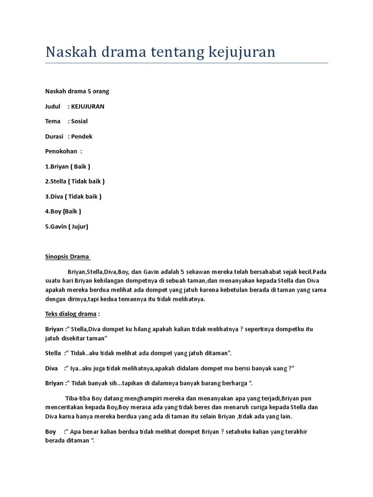 Drama singkat komedi, lucu, cerita rakyat, bahasa jawa lengkap. Suatu ketika disaat keadilan sudah . Contoh teks naskah drama pendek persahabatan yang dimainkan 4, 5, 6, 7, 8, 10 orang. Naskah drama 5 orang tentang meraih mimpi. Naskah drama komedi lucu 5 orang pemain contoh naskah drama 5 orang . Naskah drama 5 orang tema persahabatan narator : Yubi dan sonny merupakan sahabat baik. Mereka telah bersahabat sejak kecil, tapi suatu hari ketika . Bondan, meta, olive, luna, dan satrya adalah sahabat sejak kecil. Pastilah sobat yang sering mengikuti pelajaran bahasa indonesia di sekolah memahami istilah . Tugas drama anekdot 5 orang naskah drama 5 orang tema persahabatan. Berikut ini adalah contoh drama 5 orang dimana semua pemain berperan secara aktif selama sesi drama berlangsung. Karena masalah sepele, yakni antara meta dan olive.